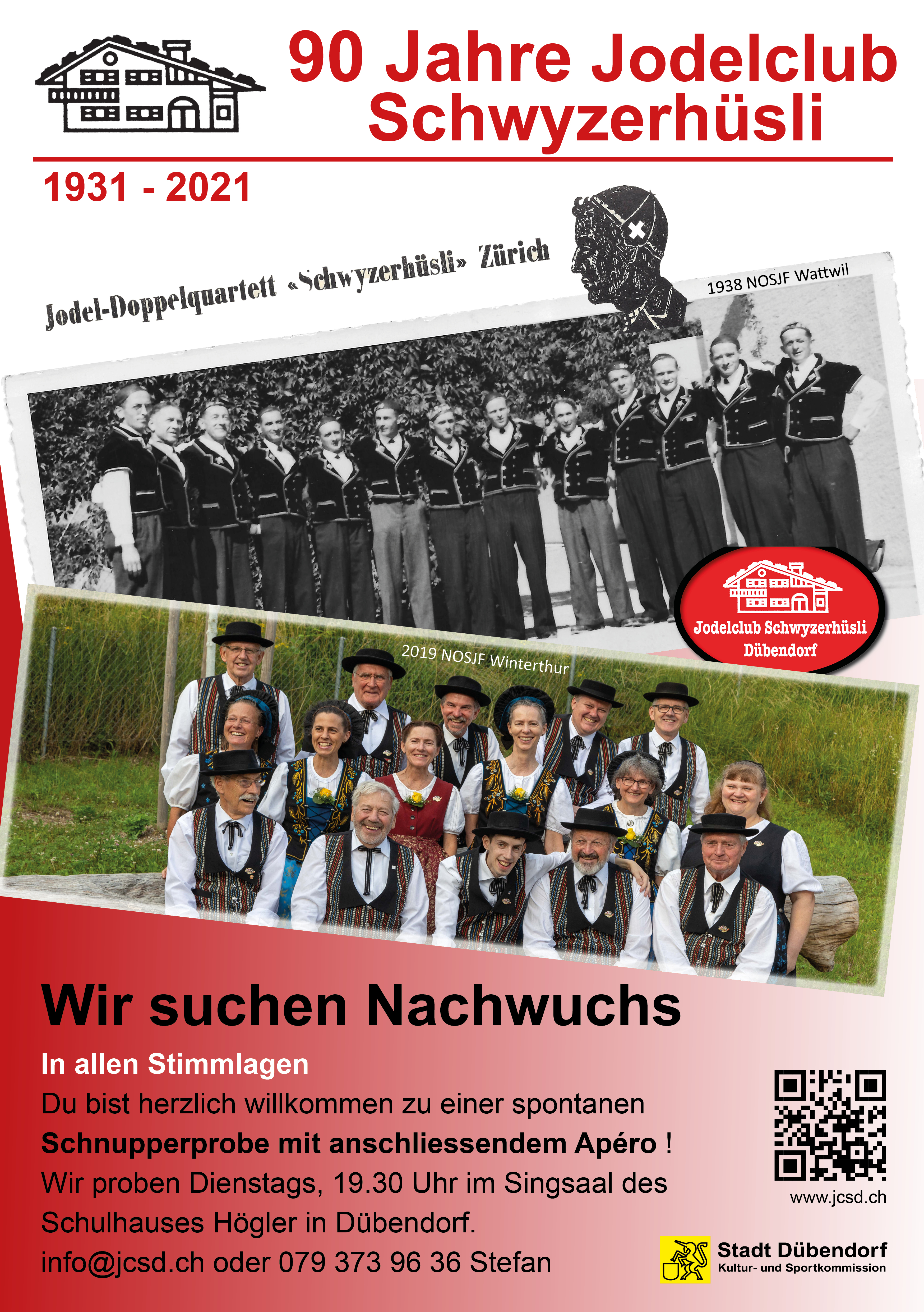 Der Jodelclub Schwyzerhüsli (JCSD) wurde 1931 in Zürich gegründet und übersiedelte 1987 nach Dübendorf. Er ist Mitglied beim Eidgenössischen Jodlerverband (EJV) beim Nordostschweizerischen Jodlerverband (NOSJV) sowie bei der Freien Jodlervereinigung "Zürcher Oberland" (FJVZO).